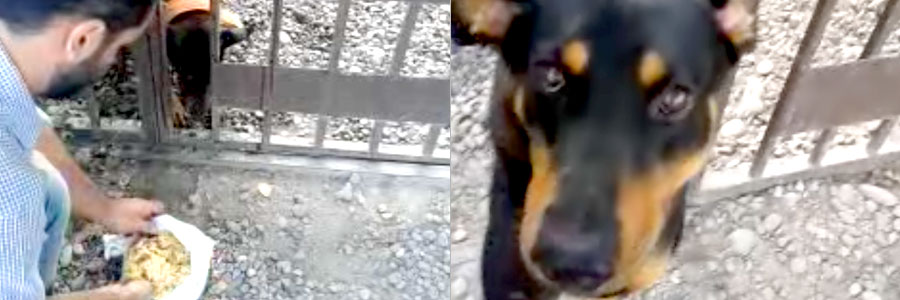 - Feeding a stray dog that been waiting for his food